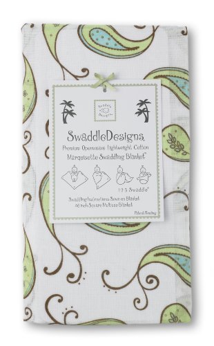 SwaddleDesigns Marquisette Swaddling Blanket, Triplets Paisley, Kiwi by SwaddleDesigns [並行輸入品]