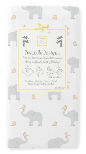 SwaddleDesigns Marquisette Swaddling Blanket, Elephant & Chickies, Pastel Yellow by SwaddleDesigns [並行輸入品]