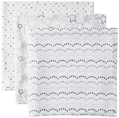 【日本正規品】 スワドルデザインズ (SwaddleDesigns) ベビースクエアモスリン スターシャインシマースターリングシルバー 3枚セット SDM-614ST