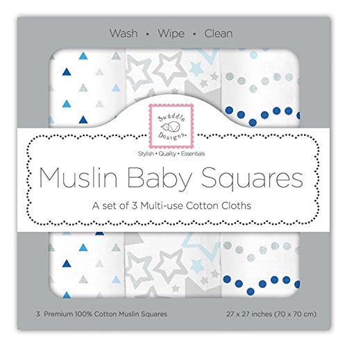 【日本正規品】 スワドルデザインズ (SwaddleDesigns) ベビースクエアモスリン スターシャインシマーブルー 3枚セット SDM-614B