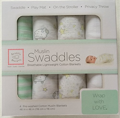 スワドルデザインズ (SwaddleDesigns) おくるみ モスリン グリーン・ホワイト 4枚セット (並行輸入品) [並行輸入品]