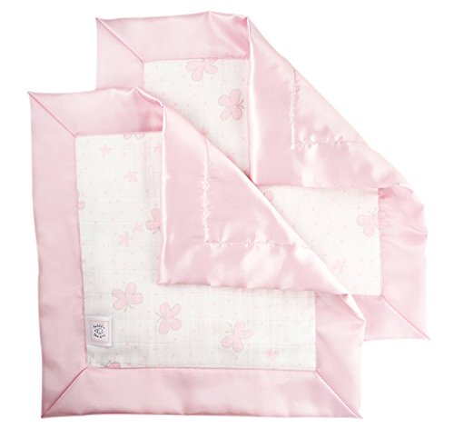 SwaddleDesigns Cotton Muslin Baby Lovies, Set of 2 Security Blankets, Pastel Pink Butterflies