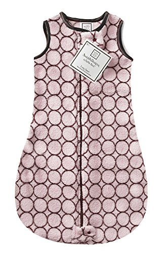 SwaddleDesigns Sleeping Sack with 2-Way Zipper, Cozy Brown Mod Circles on Pastel Pink, 3-6MO