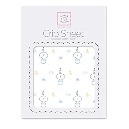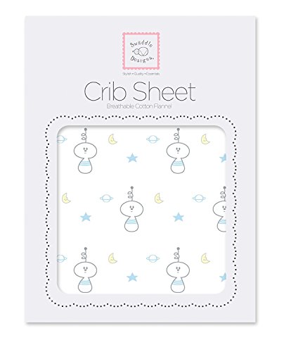 SwaddleDesigns Cotton Flannel Fitted Crib Sheet, Space Friend, Pastel Blue [並行輸入品]