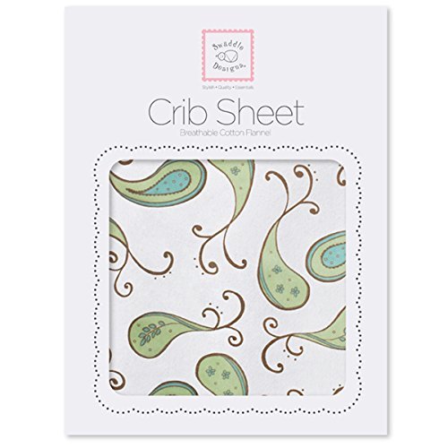SwaddleDesigns Cotton Flannel Fitted Crib Sheet, Triplets Paisley, Kiwi [並行輸入品]