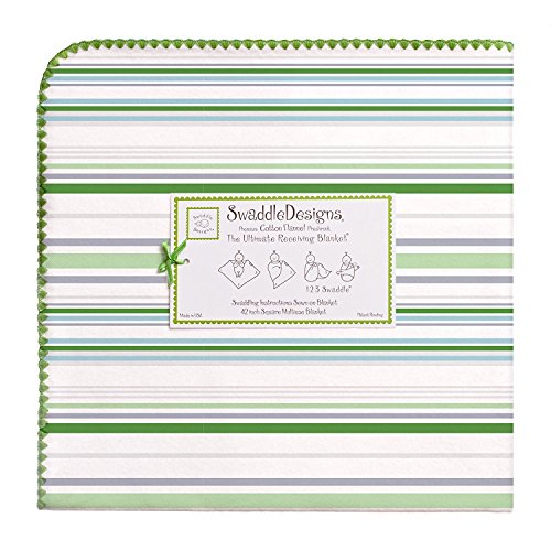 SwaddleDesigns Ultimate Receiving Blanket, Jewel Tone Stripes, Pure Green [並行輸入品]