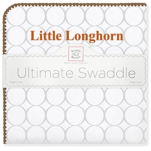 Color:Sterling Mocha ツ?|ツ? Style:Texas Little Longhorn SwaddleDesigns Collegiate Pride Collection allows your entire family to sport your school colors and support your college sports team! Our Ultimate Receiving Blankets are proudly made in the USA using USA cotton. They are baby soft with a beautiful decorative edge, and are larger than typical receiving blankets, 42 x 42 inches (106 x 106 cm). These durable blankets have a multitude of uses beyond swaddling; such as a privacy throw when breastfeeding, play mat for tummy time, or as a shield over the stroller to protect from the sun or cool breeze. All of our blankets feature SwaddleDesigns exclusive 1-2-3-Swaddle label with easy how-to-swaddle steps sewn to the edge of the blanket, helping new parents learn to swaddle confidently. We offer a large array of essential baby items in a variety of designer colors, trims and prints. SwaddleDesigns, made with love, for the little one you love.