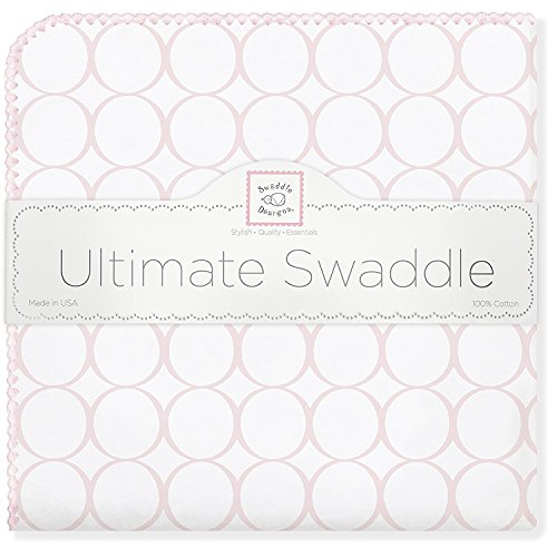 SwaddleDesigns Ultimate Swaddle Blanket, Made in USA, Premium Cotton Flannel, Pastel Pink Mod Circles