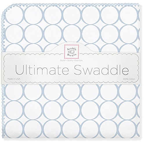 SwaddleDesigns Ultimate Swaddle Blanket, Made in USA, Premium Cotton Flannel, Pastel Blue Mod Circles