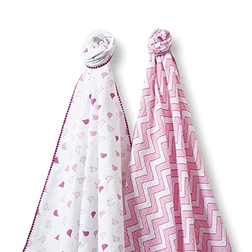 Color:Pink Chic Chevron SwaddleDesigns SwaddleDuo includes two premium, lightweight and baby soft cotton swaddling blankets. The Ultimate Receiving Blanket is an open weave, preshrunk flannel made in the USA, 42 x 42 inches (106 x 106 cm) for moderate to cooler environments. The Marquisette Swaddling Blanket is an imported, breathable cotton blanket, 46 x 46 inches (116 x 116 cm) for warmer temperatures. With this Duo parents will be prepared for a range of temperatures and new parents love the signature 123 Swaddle label with easy how-to-swaddle steps sewn to the edge of each blanket. When you are dressing baby, remember the SwaddleDesigns Goldilocks Guide: Baby should not be too hot or too cold, but just right. Coordinates with a variety of our quality baby essentials. Machine wash gentle.