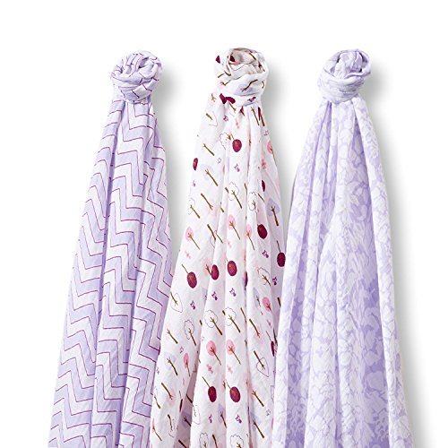 SwaddleDesigns SwaddleLite, Set of 3 Marquisette Swaddle Blankets, Premium Cotton Muslin, Lavender Lush Lite