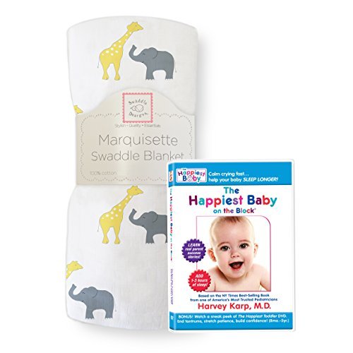 SwaddleDesigns Marquisette Swaddling Blanket Premium Cotton Muslin and The Happiest Baby DVD Bundle Yellow Safari Fun [並行輸入品]