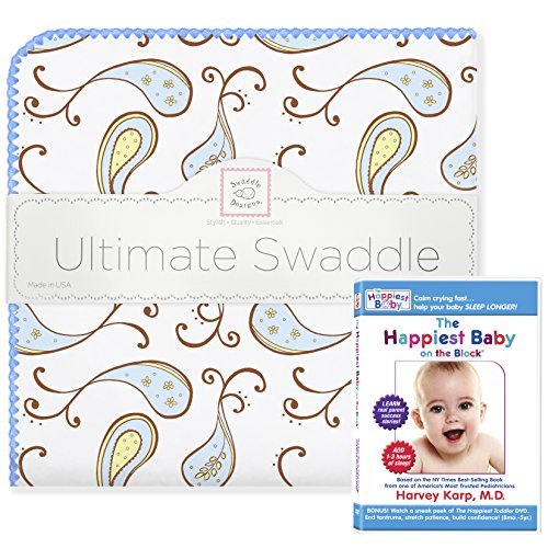SwaddleDesigns Ultimate Swaddle Blanket Made in USA Premium Cotton Flannel and The Happiest Baby DVD Bundle Pastel Blue Paisley [並行輸入品]