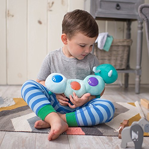 This cuddly friend provides a multi-sensory experience that helps little ones learn to self-soothe. With a gentle hug, the SwaddleMe Cuddlebug plays lullabies, heartbeat and nature sounds, and three soft-glow lights fade in-and-out in sync with the music to lull baby to sleep.