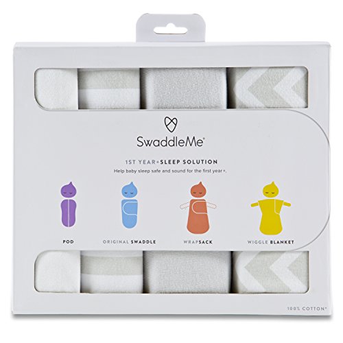 SwaddleMe 1st Year Safe Sleep Kit makes a great gift for expecting parents;Includes 1 Pod (NB), 1 Swaddle (SM), 1 Wrap Sack (LG), 1 Wiggle Blanket (LG);The only wearable blanket kit that keeps baby sleeping safely throughout the first year