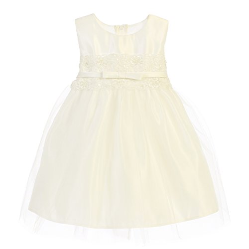 Sweet Kids Baby Girlsアイボリーサテンチュールレースリボンフラワーガールドレス6 – 24 m
