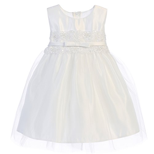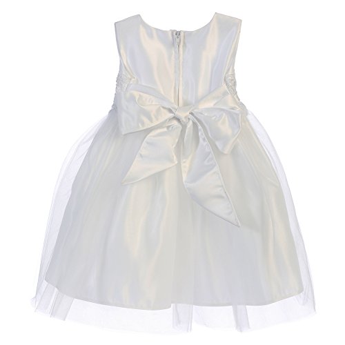 Sweet Kidsベビー女の子ホワイトサテンレースリボンチュールフラワーガールドレス6 – 24 m カラー: ホワイト