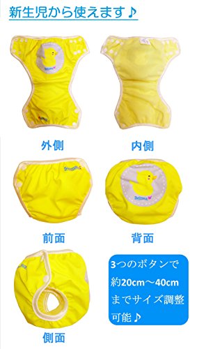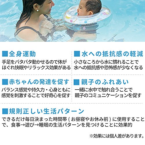 - [本体サイズ] 空気充填時:リングの内側(首周り部分) 約25~30cm前後、内径8.5~9.0cm、うきわの外径直径40cm前後(いずれも空気量により変わります)、スイミングパンツ:ウェスト部分約20cm~40cm(ボタン3段切替)