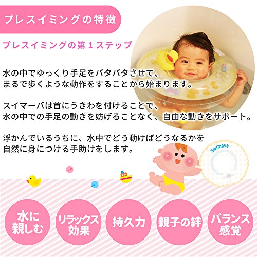 ・スイマーバは18か月、かつ11kgまでの赤ちゃんにお使い頂ける、首に付けるうきわ型のスポーツ知育用具です。