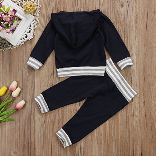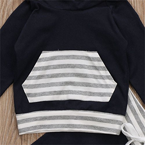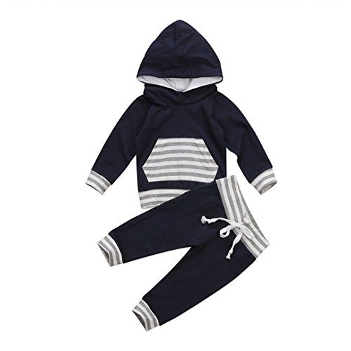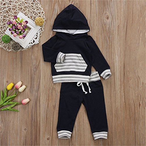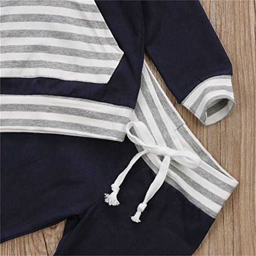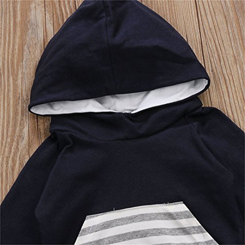 ベビー服 パジャマ 上下2点セット 長袖 赤ちゃん 肌着 女の子 男の子 ストライプ 長袖スウェット カジュアル ロングパンツ レジャー フード付き ポケット 春秋冬用 ブルー 男女兼用 70 80 90 100 (90)