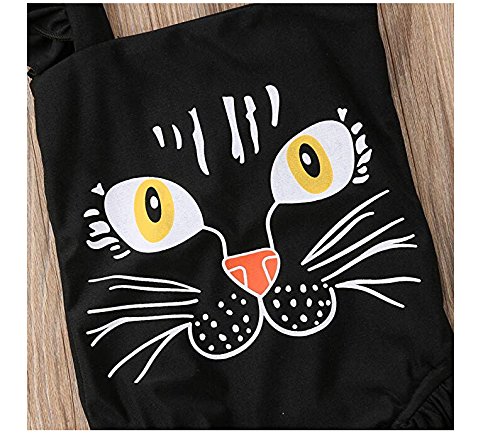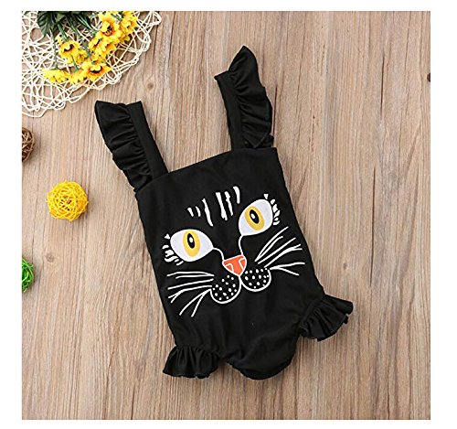 Sylvamorning 猫 夏 黒 子供水着 女児 水着 女の子水着 ガールズ 水着 ベビー水着 キッズビーチみずぎ 海水浴水泳 ふわふわ 飛び袖 ワンピース水着 ビーチ 温泉 水遊び トレーニング (90)