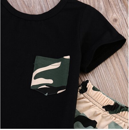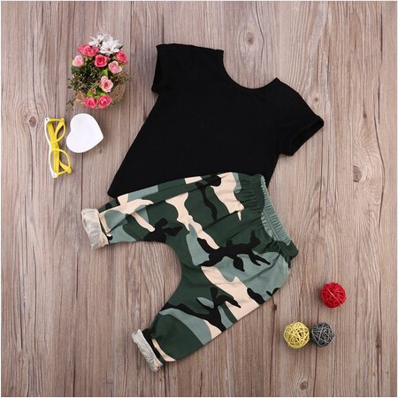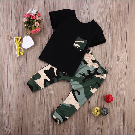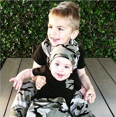 Sylvamorning 迷彩 子供服 男の子 女の子 赤ちゃん 半袖 Tシャツ ベビー パジャマ Tシャツ 上着 トップス ロングパンツ パンツ ズボン 上下セット ルームウェア ホームウェア 春夏 クルーネック スウェット セットアップ 保育園 部屋着 プレゼント (90, ブラック)