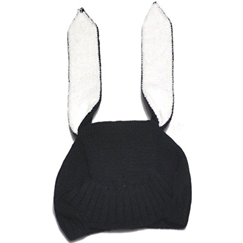 うさぎちゃん風 ニット帽 ニット帽子 防寒 ベビー帽子 子ども帽子 ベビーキャップ キッズハット 女の子 男の子兼用 お祝い プレゼント (ブラック)