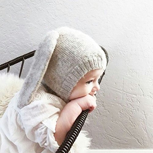 - ベビー & キッズ 用 かわいい うさぎちゃん風 ニット帽 です。首まで保護してあったか、マフラーいらず♪