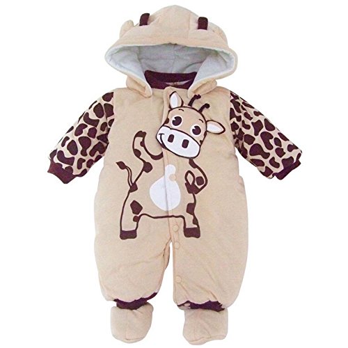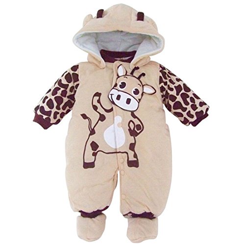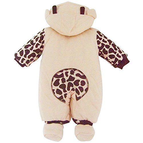 ベビー服 ロンパース 足つき 女の子 ロンパース長袖 男の子 カバーオール長袖 動物デザイン ふわふわ 前開 カジュアル フード付き 着ぐるみ 防寒着 キリン てんとう虫 可愛いロンパース (80, キリン (ベージュ))