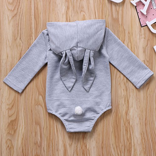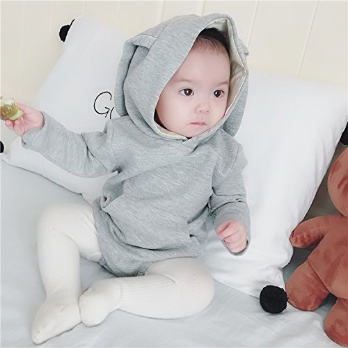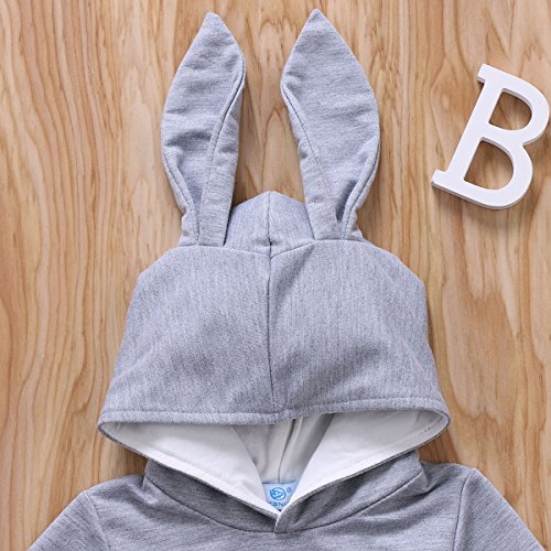 ベビー服 ロンパース長袖 カバーオール長袖 女の子 肌着 カバーオール 秋冬 兎 長い耳 帽子付き おくるみ 着ぐるみ 赤ちゃん服 出産祝い プレゼント 70 80 90 100 (90, グレー)