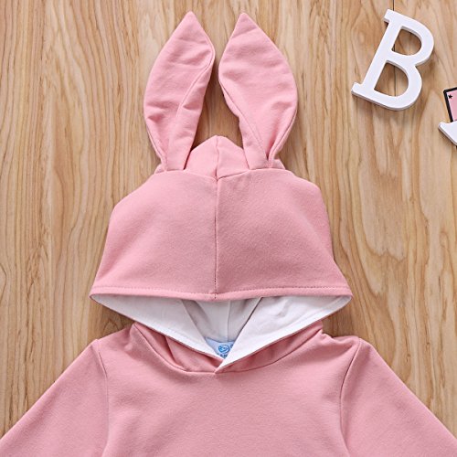 ベビー服 ロンパース長袖 カバーオール長袖 女の子 肌着 カバーオール 秋冬 兎 長い耳 帽子付き おくるみ 着ぐるみ 赤ちゃん服 出産祝い プレゼント 70 80 90 100 (100, ピンク)