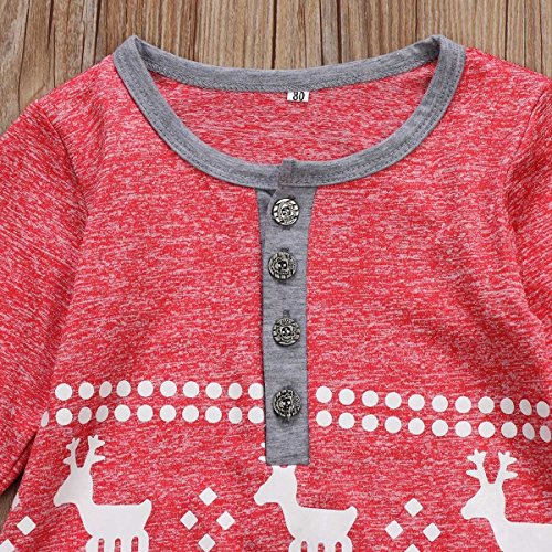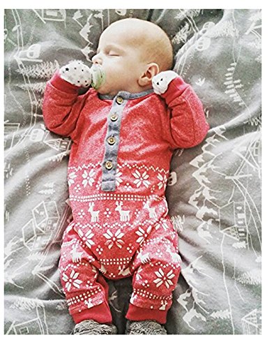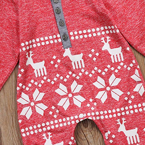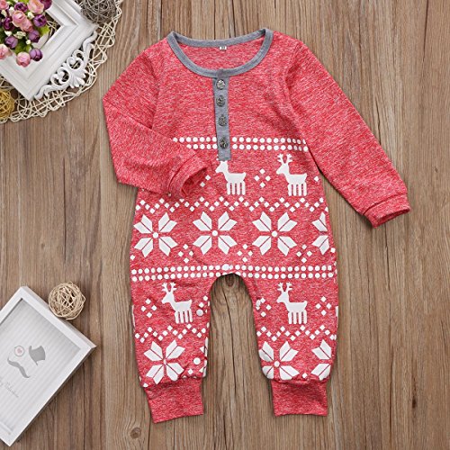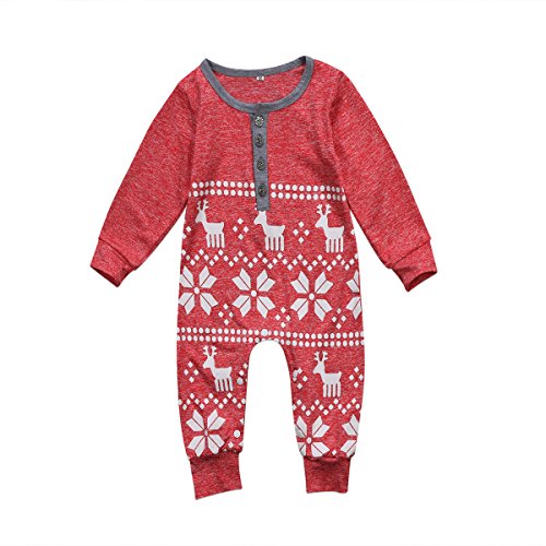 ベビー服 ロンパース 新生児 カバーオール 長袖 小鹿 クリスマス 男の子 長袖ボディースーツ 女の子 長袖ロンパース 赤ちゃん 肌着 子供服 (80, レッド)