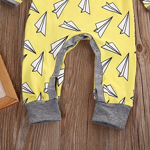 ベビー服 紙飛行機 ロンパース 新生児 カバーオール 長袖 男の子 長袖ボディースーツ 女の子 長袖ロンパース 帽子付き 2点セット 赤ちゃん 肌着 子供服 春秋冬 イエロー 70 80 90 100 (80)