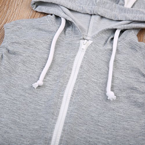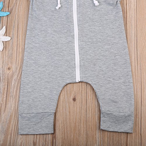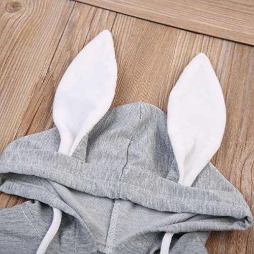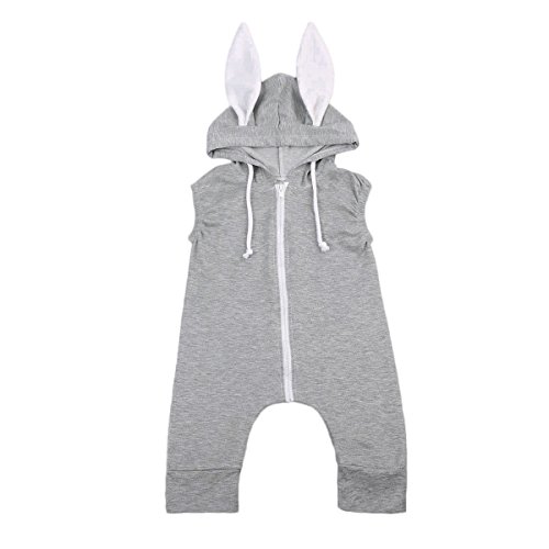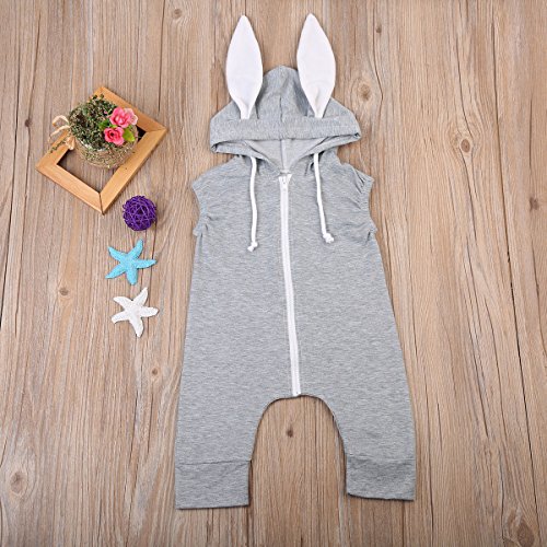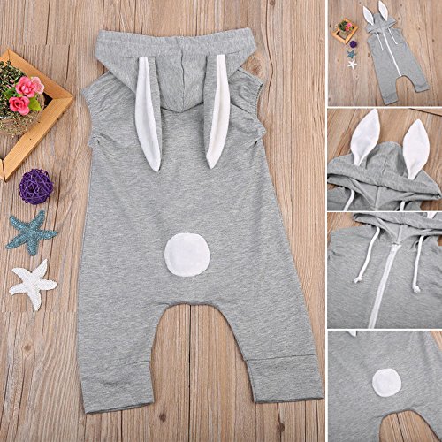 Sylvamorning 兎 可愛い耳 ベビー カバーオール 袖なし ロンパース 無地 ウサギしっぽ 男の子 女の子 ノースリーブ カバーオール 春夏秋冬 グレー 0~24ヶ月設定 70 80 90 100 (80)