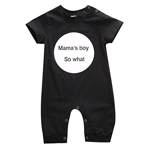 Sylvamorning 英字 ベビー カバーオール 半袖 ロンパース 男の子 カバーオール 夏 ブラック グレー 0~18ヶ月設定 70 80 90 100 (90, ブラック)