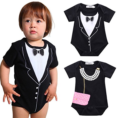 Sylvamorning 紳士服 美人服 ベビー カバーオール 半袖 ロンパース 男の子 女の子 カバーオール 夏 ブラック 0~18ヶ月設定 70 80 90 100 (80, 美人服)
