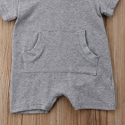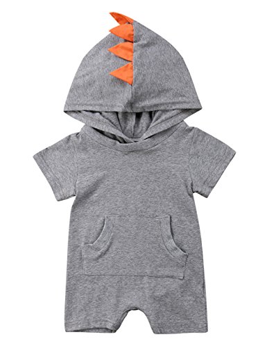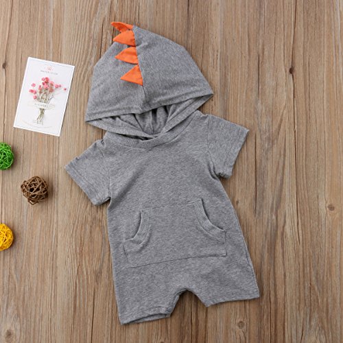 Sylvamorning 恐竜 無地 子供服 幼児 新生児カバーオール 男の子 女の子 ロンパース 半袖 赤ちゃん 肌着 帽子つき 新生児 カバーオール ベビー キッズ オーバーオール 70 80 90 100 (70, 灰色)