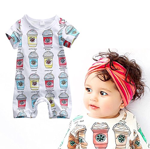 Sylvamorning 飲み物 ベビー カバーオール 半袖 ロンパース 男の子 女の子 カバーオール 春秋冬 ホワイト 0~24ヶ月設定 70 80 90 95 (95(半袖新品))