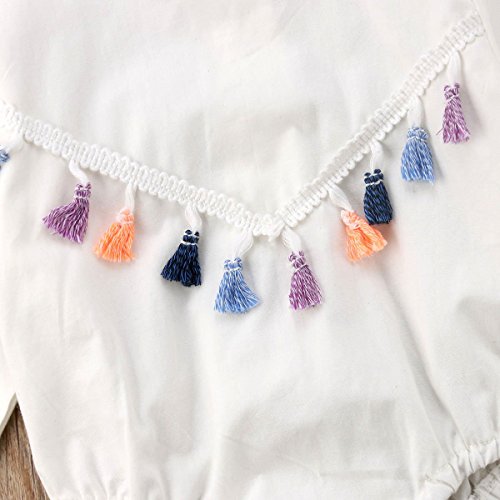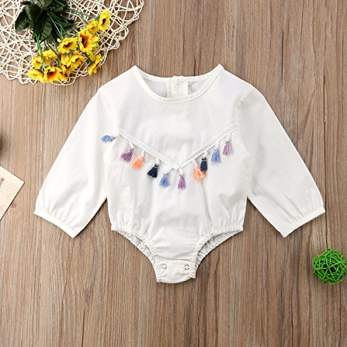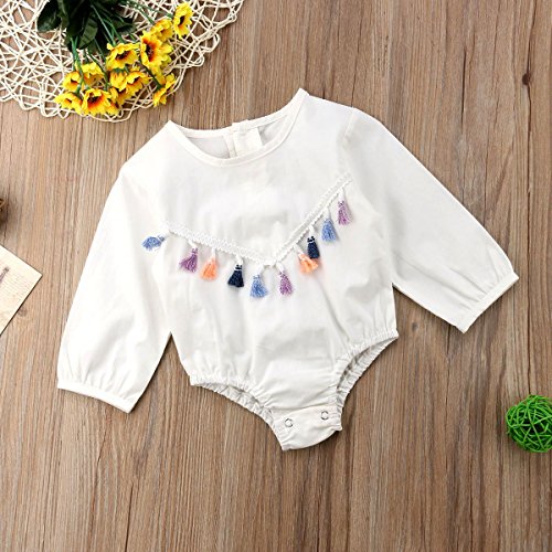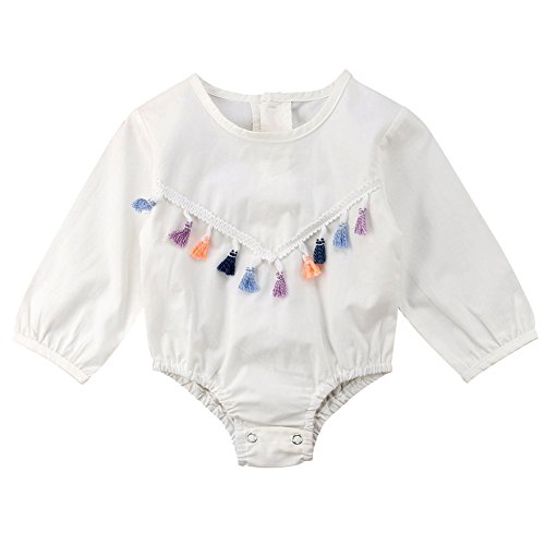 Sylvamorning 子供服 キッズ服 ベビー服 赤ちゃん ロンパース 長袖 無地 女の子 カバーオール 春秋冬 タッセル 可愛い 肌着 薄手 70 80 90 100 (70, ホワイト)