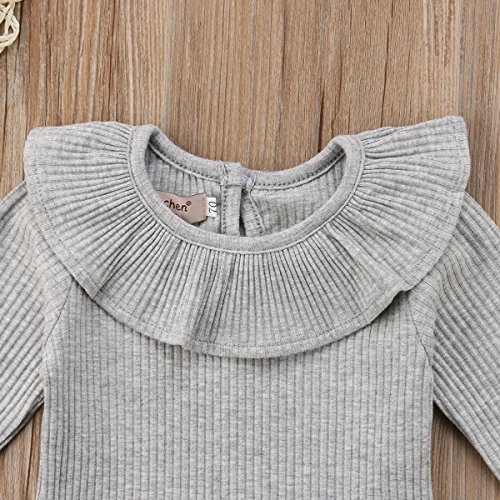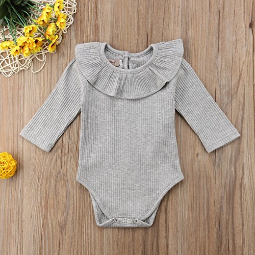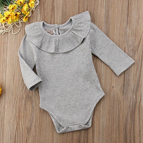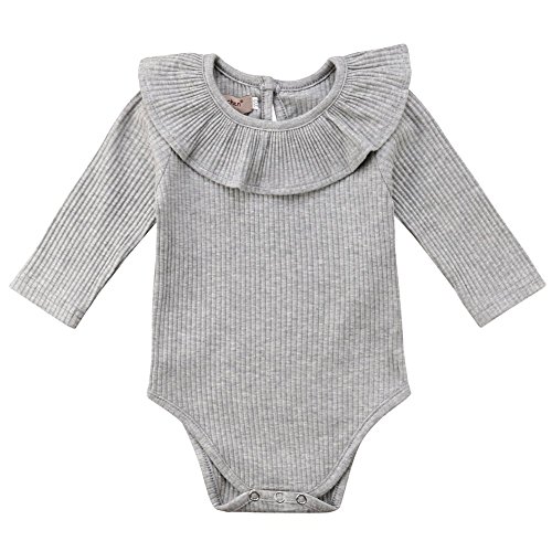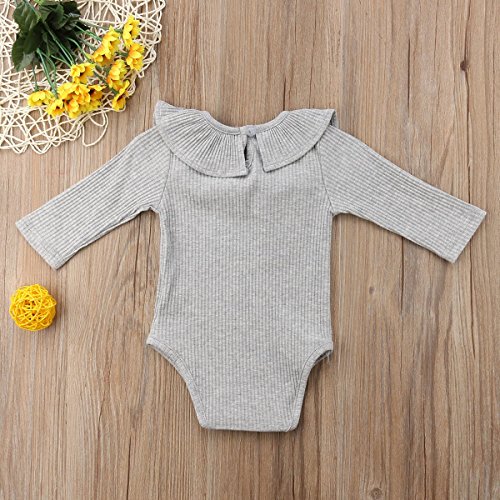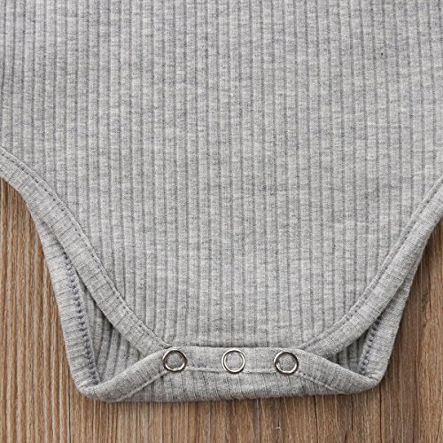 Sylvamorning 子供服 キッズ服 ベビー服 赤ちゃん ロンパース 長袖 無地 女の子 カバーオール 春秋冬 リブ 可愛い 肌着 70 80 90 100 (80, グレー)