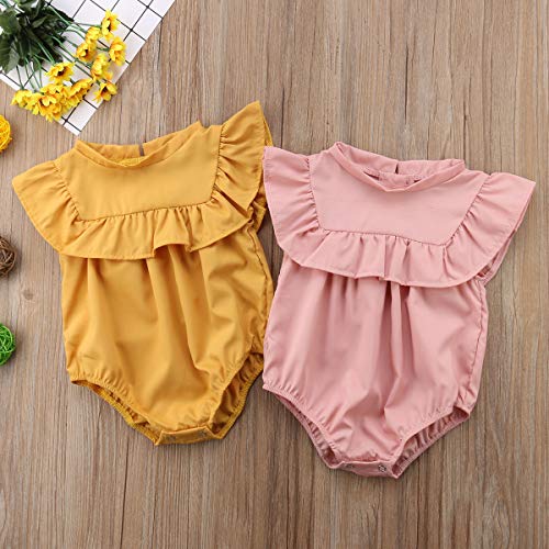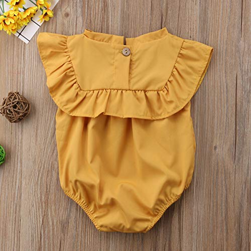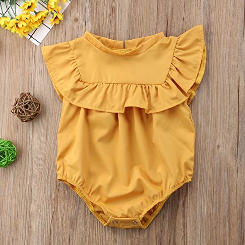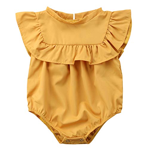Sylvamorning 子供服 キッズ服 ベビー服 赤ちゃん ロンパース 飛び袖 ガールズ カバーオール 春夏 可愛い 肌着 薄手 女の子 おしゃれ 幼児ロンパース 新生児カバーオール 無地 姫様 70 80 90 100 (80, イエロー)