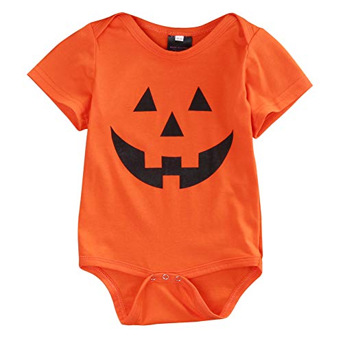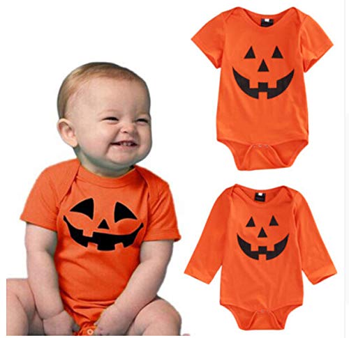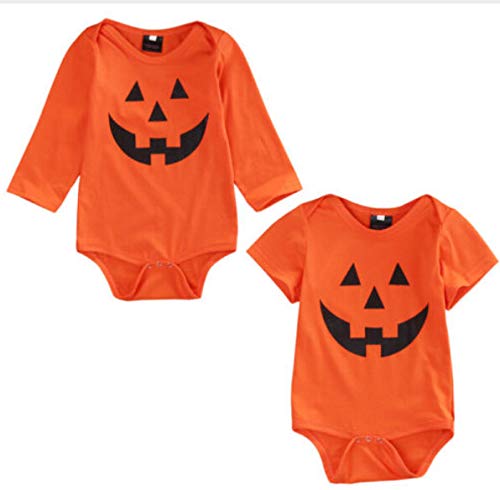 Sylvamorning ハロウィーン カボチャ 子供服 キッズ服 ベビー服 赤ちゃん ロンパース 長袖 無地 女の子 男の子 カバーオール 半袖 春夏秋冬 薄手 可愛い 肌着 70 80 90 100 (70, 半袖)