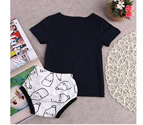 Sylvamorning ベビー服 子供服 男の子 Tシャツ パンツ ルームウェア パジャマ 上下セット 夏 ボーイズ Tシャツ 短パン ズボン クッキー ドーナツ ミルク 牛乳ボトル 70 80 90 100 0~24ヶ月設定 (70, ミルク+牛乳ボトル)