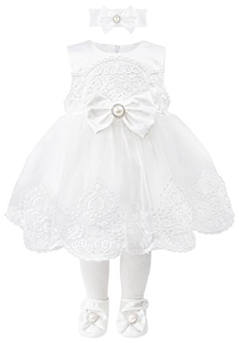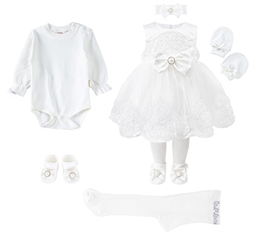 t.f.タフィータフィーBaby Girl洗礼式洗礼刺繍ホワイトドレスガウン6 Pieceデラックスセット カラー: ホワイト