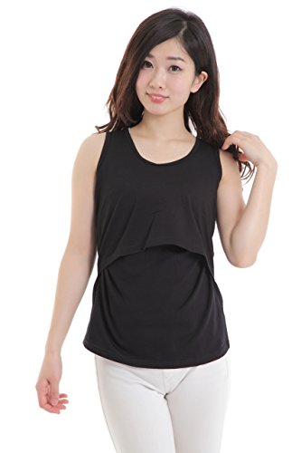 (CHOUCHOU) 年中使える 授乳 タンクトップ マタニティ ウェア 授乳服 (ブラック)