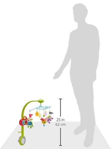 Choose your baby's music! Let baby enjoy endless musical variety;Detachable take-along baby MP3 player, 8 pre-loaded classical melodies by Mozart, Schubert, Mendelssohn and more;Detachable take-along baby stereo player;Baby-safe MP3 compartment for uploading baby's favorite music using a USB stick (not supplied);Light, mute & movement control. Easy, 3 step assembly with 3 soft, colorful characters and 3 prism balls