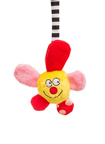 IMPORTANT! - Always attach toy's two triangle plastic rings to the headrest metal poles. Suitable only for cars with adjustable headrest with metal poles!;IMPORTANT! - Adjust height and angle with Velcro straps for baby's reach. The toy's bottom part should be located between the car chair and car seat;A perfect toy for keeping your baby entertained whilst travelling. For babies travelling in a rear facing car seat.;Can with used in conjunction with a baby view mirror. Suitable from birth.;Richly colored crinkling frog, jingle bells ball and rattling flower toys.