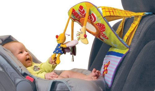 Keep your little one entertained in the car with this unique toy. Made of soft, colorful fabrics, it attaches to the seat in front of your child and adjusts easily so they can reach all the fun activities. Features soft dolls, fun characters, a safe mirror and a storage pocket for other toys. Imported. 11Lx10W".