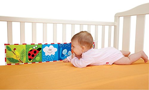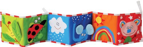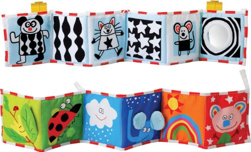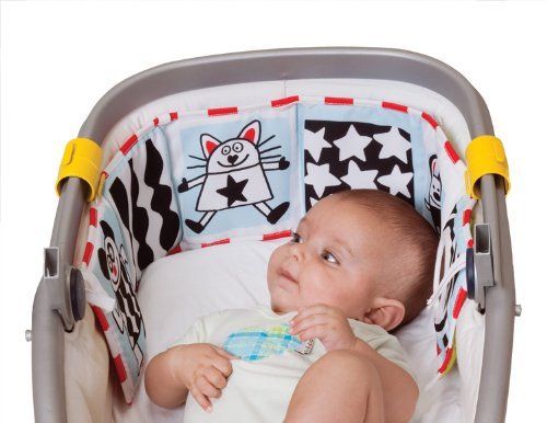 The 34 inch Taf Toys Clip-On Pram Book is a super soft, beautifully illustrated, double-sided fabric baby book that easily attaches to most prams and cots by means of two large clips - there are three attachment options. The Clip-On Pram Book is designed to be suitable for two stages of baby's development. Each side appeals to different developmental stages. Side one is aimed at birth to 3 months. The six panels have high contrast colors and patterns, smiley face drawings and a baby-safe mirror, all of which will aid visual development in the early stages. Side two is richly colored and has beautiful, humorous illustrations by renowned French designer, Alain Crozon, along with many appealing textures. At Taf Toys we understand that choosing the right developmental toy for your child is a serious decision. Taf Toys' wide range of products provides you with developmental toys that correspond to your baby's age and that are challenging, fun, and inspire the imagination. All of our toys are created with the intention to promote your baby's emotional, cognitive, and physical development during their first two years of growth. Our goal is to help your baby establish a foundation for a healthy and happy developmental path. Box Contains: Clip On Pram Book & TAF Mini catalogue