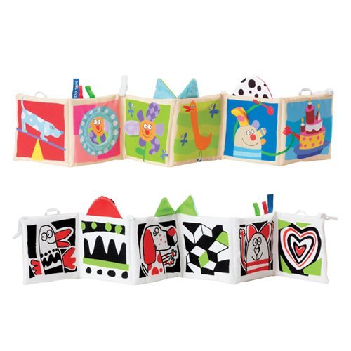 This 85cm Taf Toys Kooky Clip-On Pram Book is a super soft, attractive double-sided fabric baby book with adorable and fascinating illustrations. Designed appeal to two different developmental stages, the Kooky Clip-On Pram Book features high contrast black and white patterns on one side, helping young babies to develop visually.